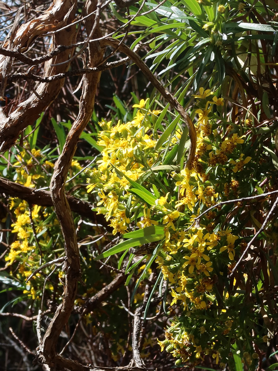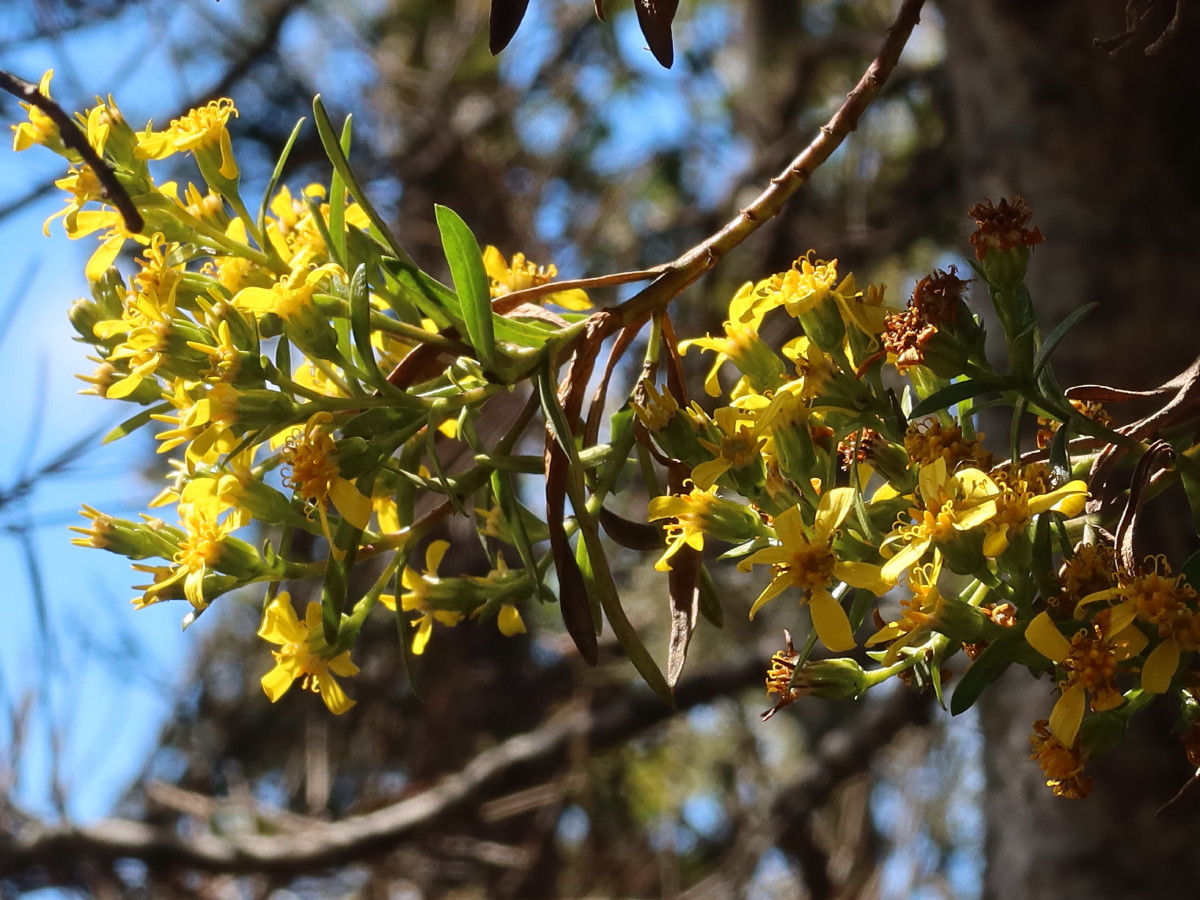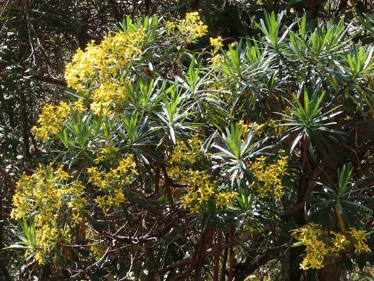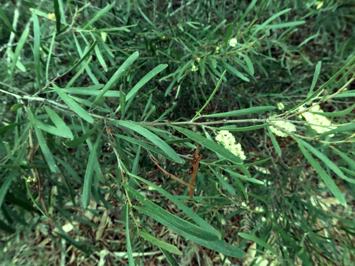 Flora: The 5 to 15 pale to bright yellow globular flowers grow on short stems from the tips of the prominent zigs and zags of the raceme’s rachis. The zig-zag rachis is very obvious when the flowerheads and their stems drop off the tips. When bare, the rachis can be persistent for several months.