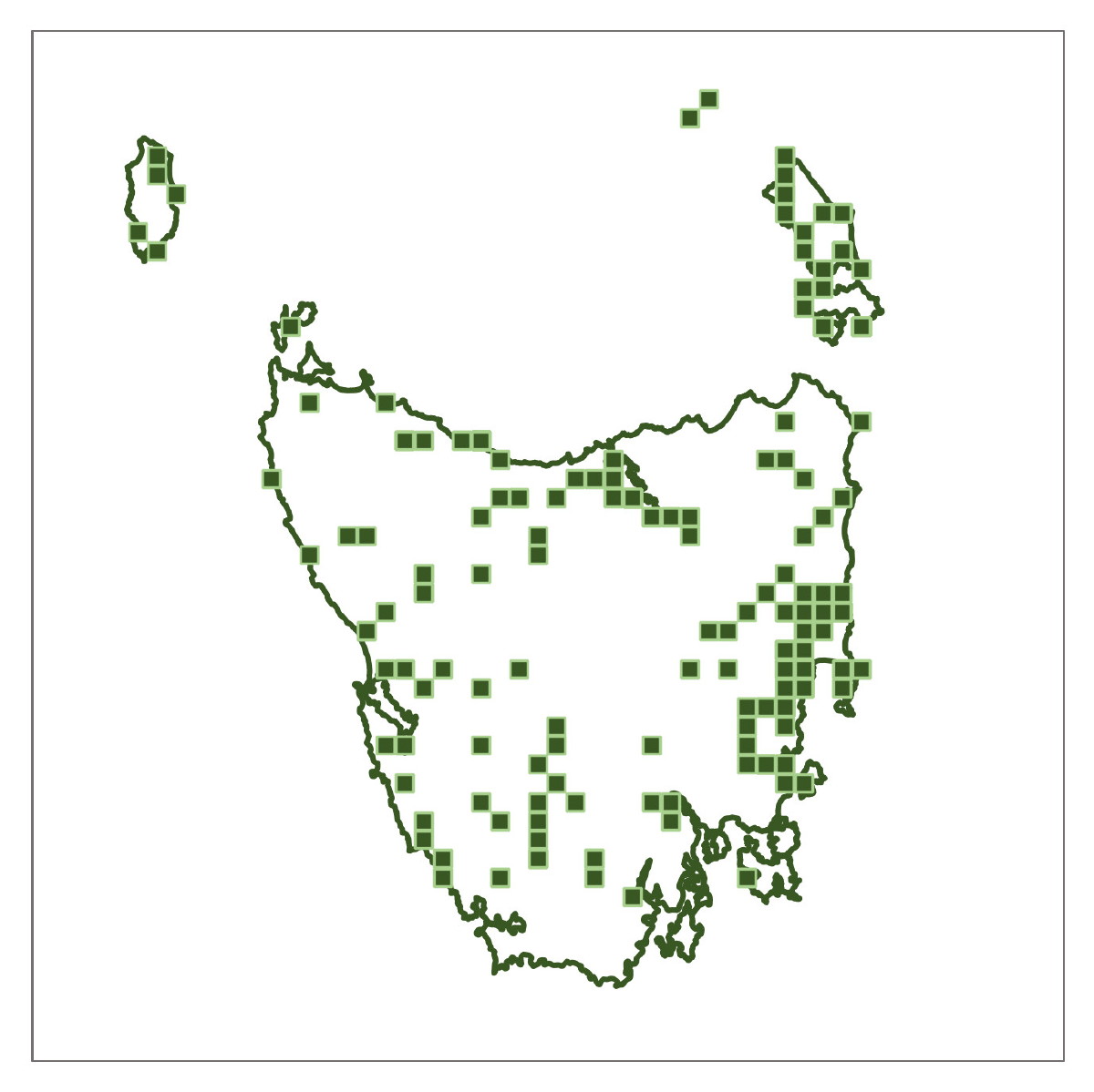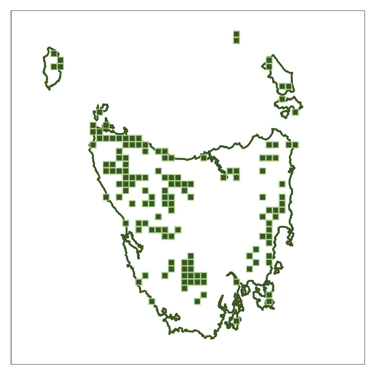 Where found: Many locations including: kunanyi/Wellington Park; South West and Tasman National Parks; along the Derwent, Huon and Northwest Bay Rivers; Bruny Island; and the Wielangta and Sandspit Forest Reserves area.