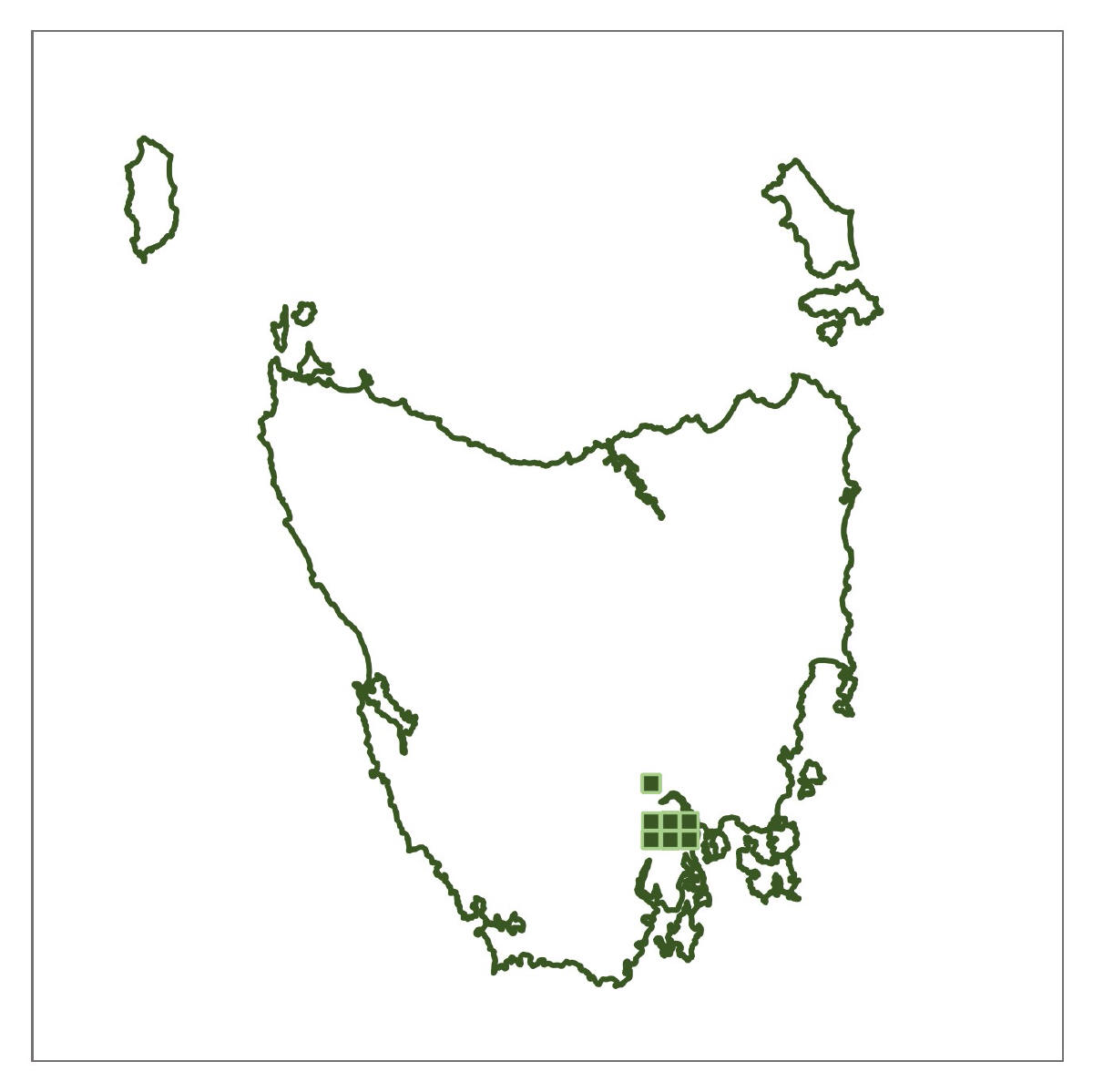 Where found: On the bank of the Derwent River beside the Glenora Road, 2km south from Plenty, downstream of the old railway bridge at the cascades; at the confluence of the Derwent and Broad Rivers via Dawson Road, Ouse; on the bank of the Tyenna River, beside the Gordon River Road, west of the Lake Fenton pipeline, Westerway; along the Carlton River at and upstream from the bridge on the Kellevie Road, Kellevie.