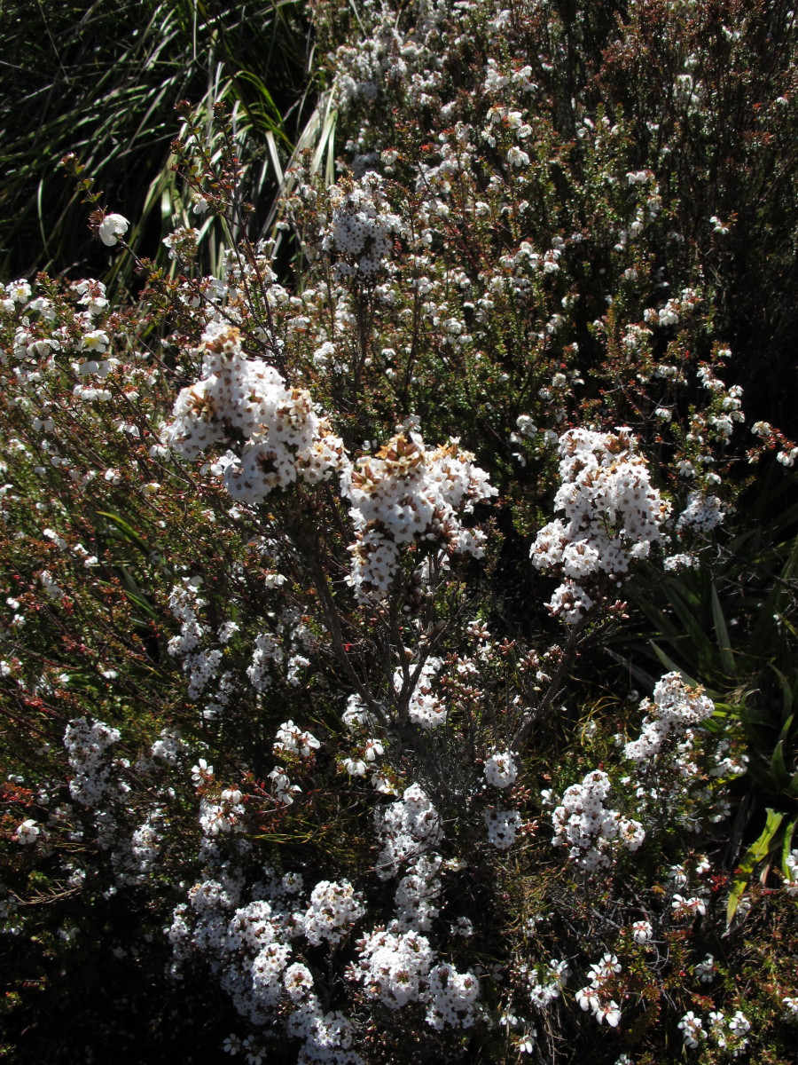 Other notes: This species requires well drained, moist soils with some sun, growing among other plants. It should be tip-pruned for a nice shape, otherwise it may grow a bit leggy or sprawling. It is larger than Epacris virgata in most features and grows its flowers in clusters toward the branchlet ends.