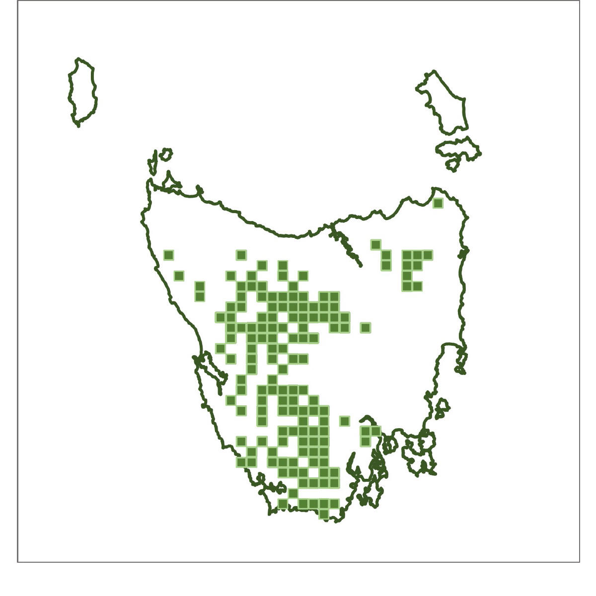 Where found: South West, Mount Field and Cradle Mountain Lake St Clair National Parks; Precipitous Bluff summit, Mount Weld and Snowy Range; western area of Wellington Park.