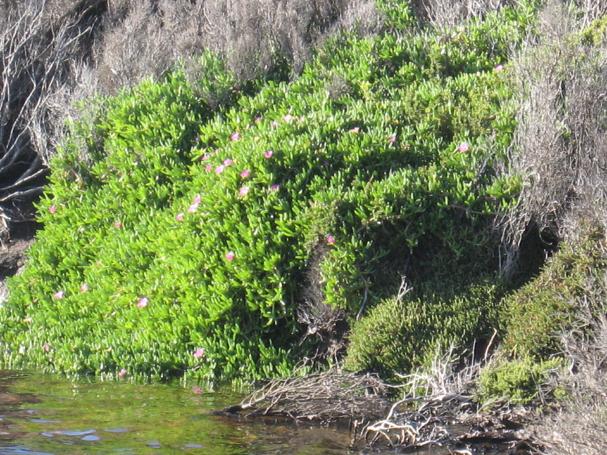 Other notes: This densely bushy, prostrate plant grows best in full sun with good drainage. It is an ideal dune controlling plant. The distinguishing features are the triangular cross section fleshy leaves and the large pink to purple flowers on a prostrate spreading plant.