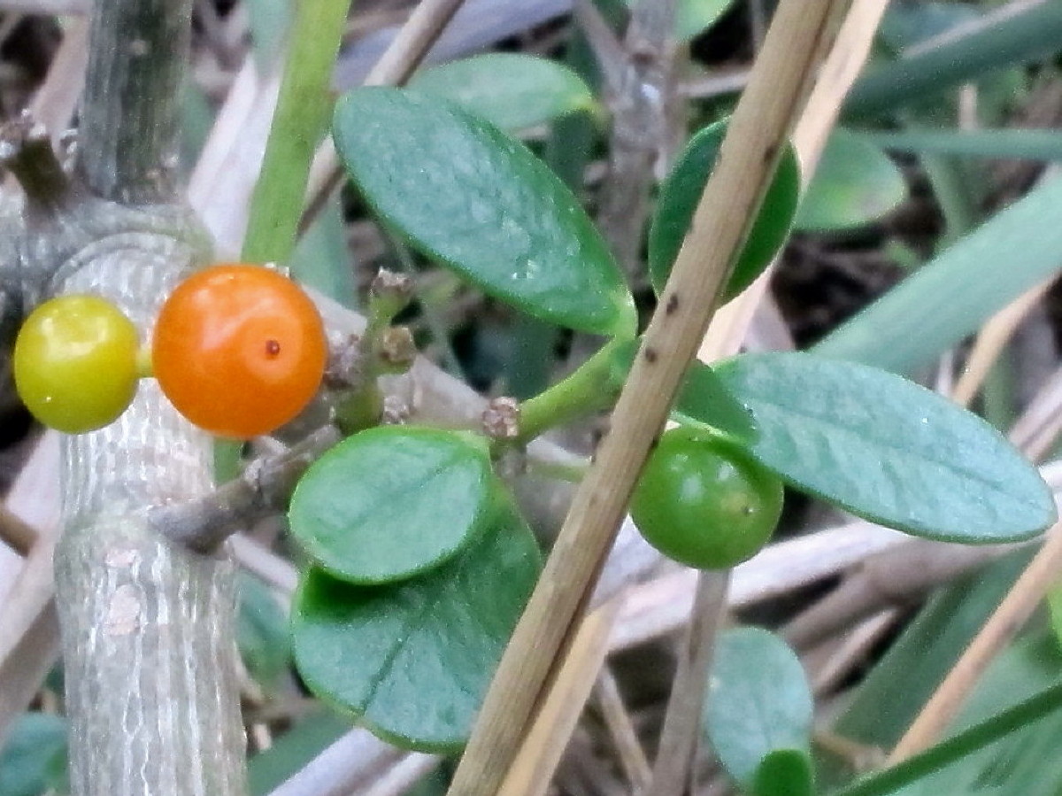 Fruit: The fruit is a 2 to 3mm diameter red to brown fleshy drupe which appears in summer, then drops off, when ripe, prior to winter.