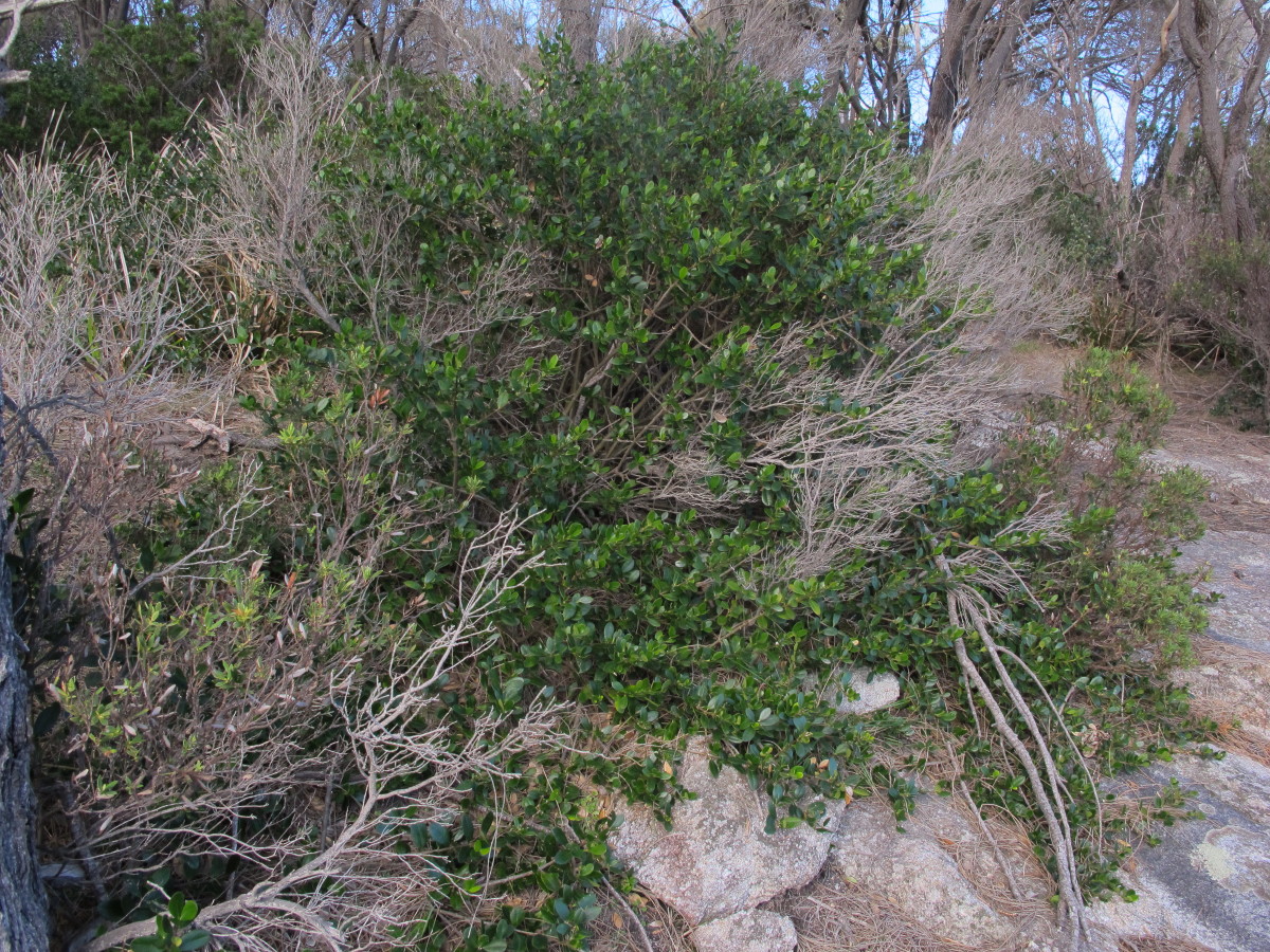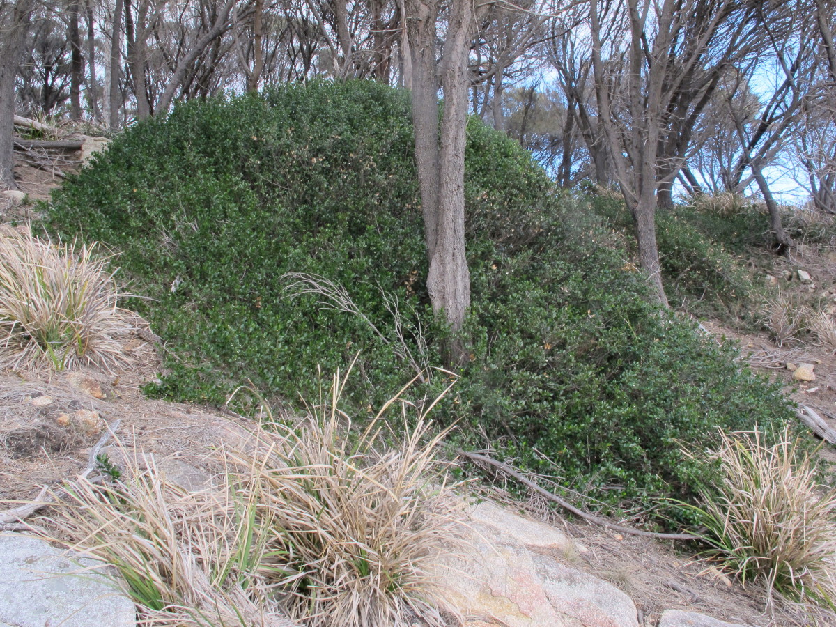 Where found: Narawntapu National Park (NP) and around the Tamar Valley; a few places across the NE; many places down the east coast; and especially the SE area including Freycinet and Tasman NPs; Bluff River Gorge; Old Convict Road, Luther Point to Stapleton Point, Thumbs and Flash Tiers around Orford; lower areas in Wellington Park and many bushland parks and gardens. The prostrate form is widespread on North Bruny Island and occassionally in Knocklofty Reserve, West Hobart.