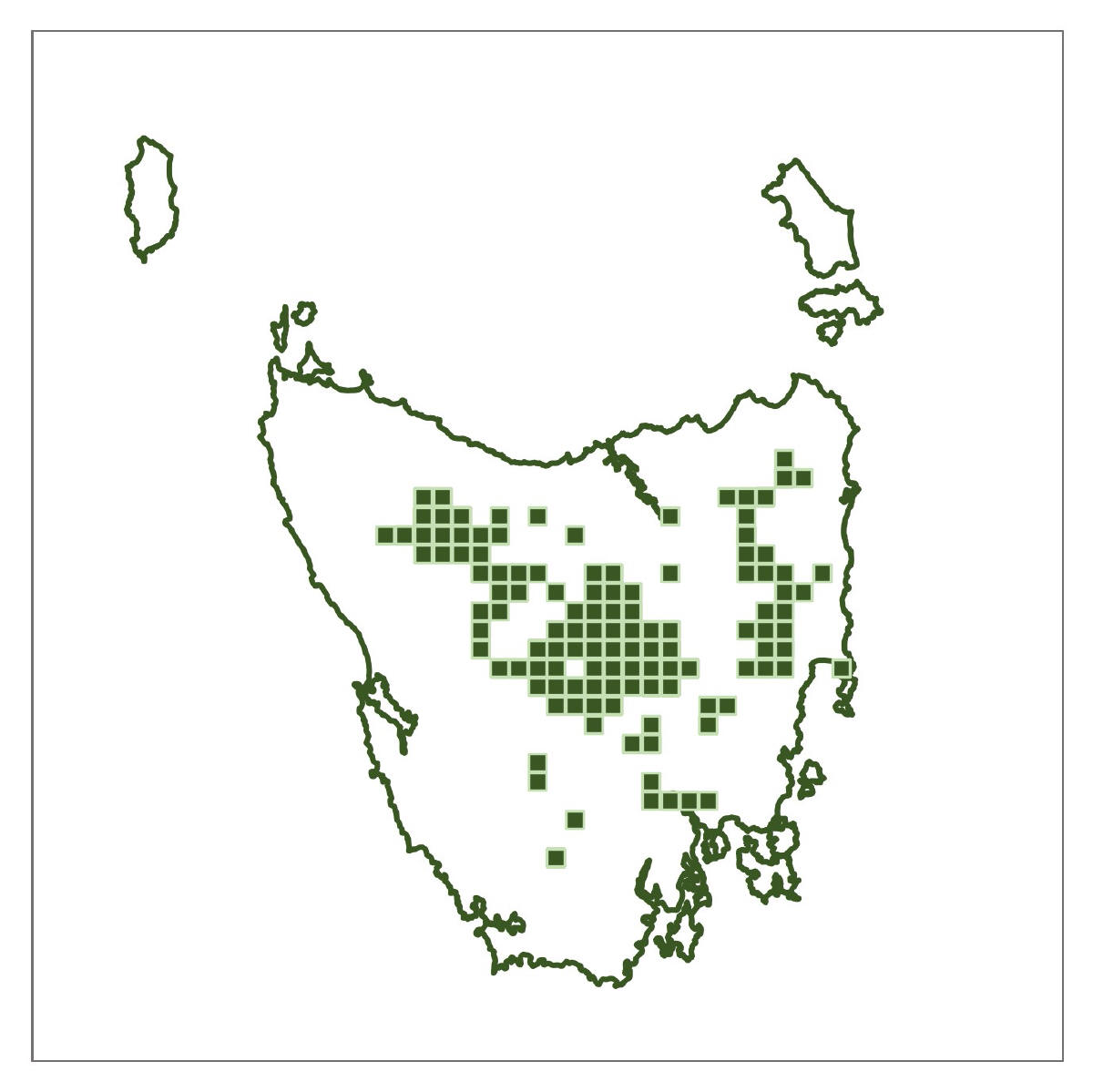 Where found: It has been recorded and/or found in: Cradle Mountain-Lake St Claire National Park (NP); Urquhart Track and other locations in Mount Field NP; Liawenee and Lake Augusta areas; Great Lake area; Miena, Breona and The Steppes in the Central Plateau area; and generally in the Central and Central northwest of the state; possibly kunanyi/Mount Wellington; and possibly some high elevation home gardens.