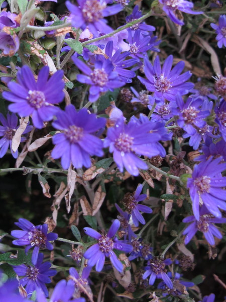 Other notes: A beautiful small shrub with grey leaves and often masses of white, blue, mauve or purplish daisy flowers, it is an ideal easily trimmed low hedge species. It grows best in well-drained moist soil in full sun, but may not flower as well in part shade. It may be propagated from tip cuttings or seed. Some commercial nurseries may have good colour forms available.