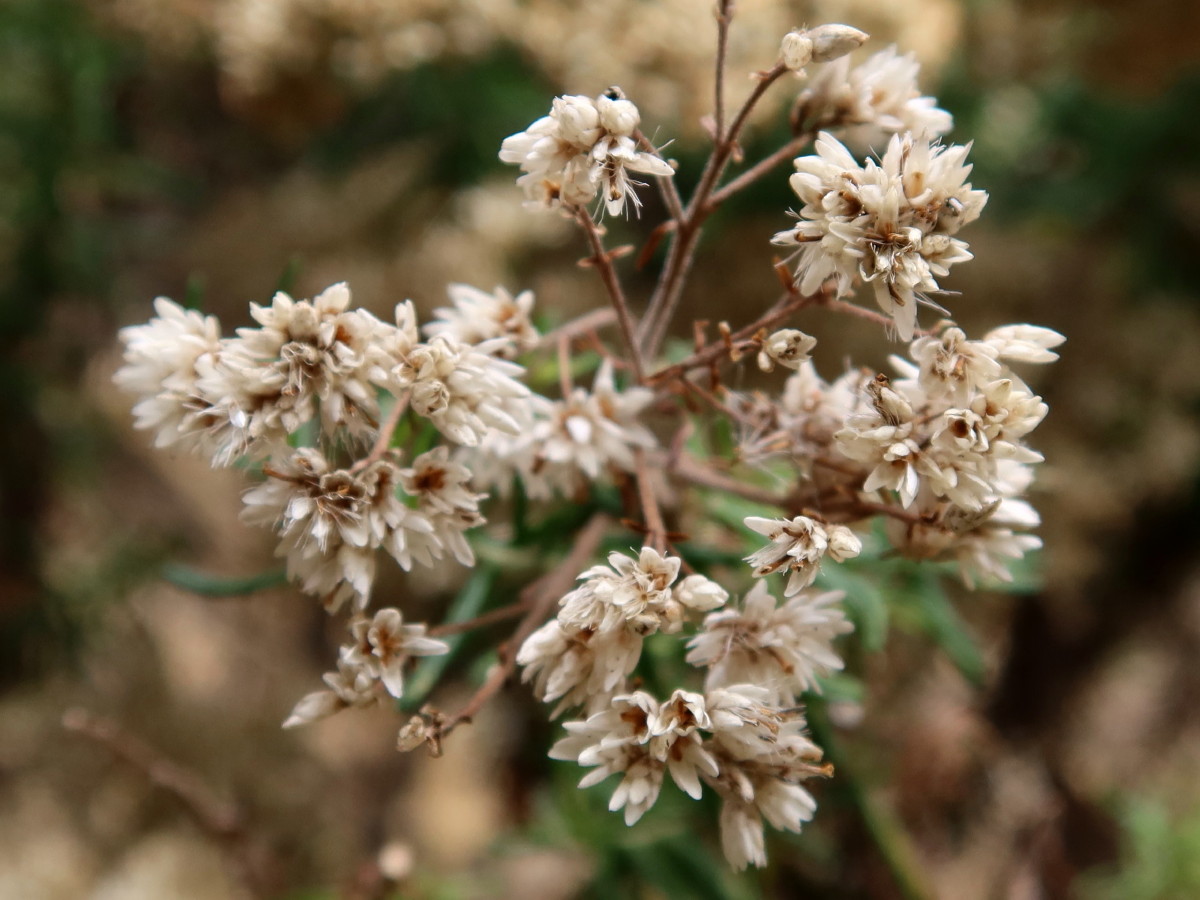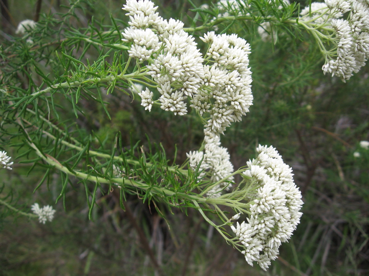 Flowers: The flower heads are arranged in terminal clusters of small daisy-like, occasionally pink but usually white flowers.