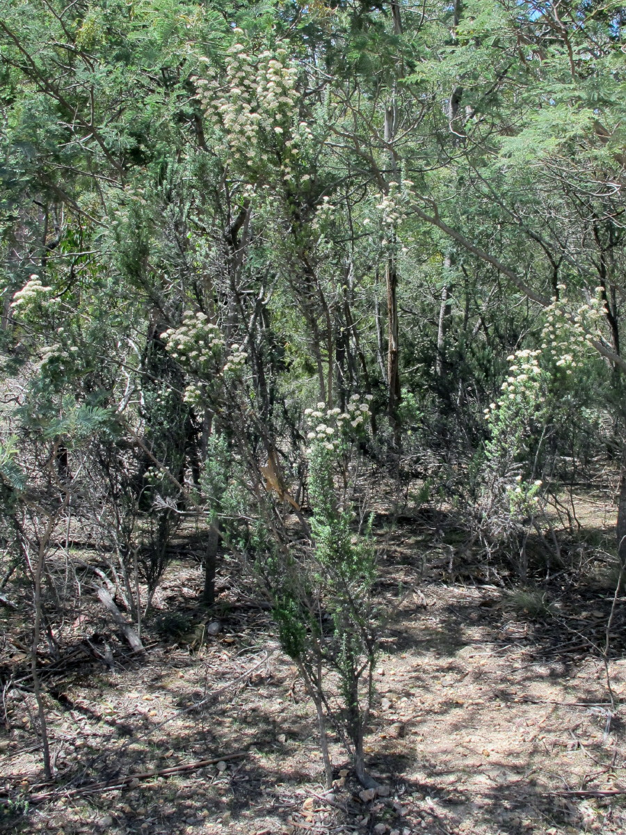Other notes: Woody shrub to small tree with the smaller branches and side stems ending as spikes. The horticultural potential of this plant lies in its ability to attract bees, butterflies and birds with its sweet-scented flowers.
